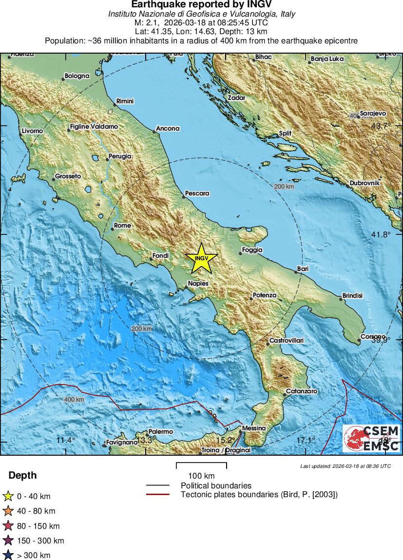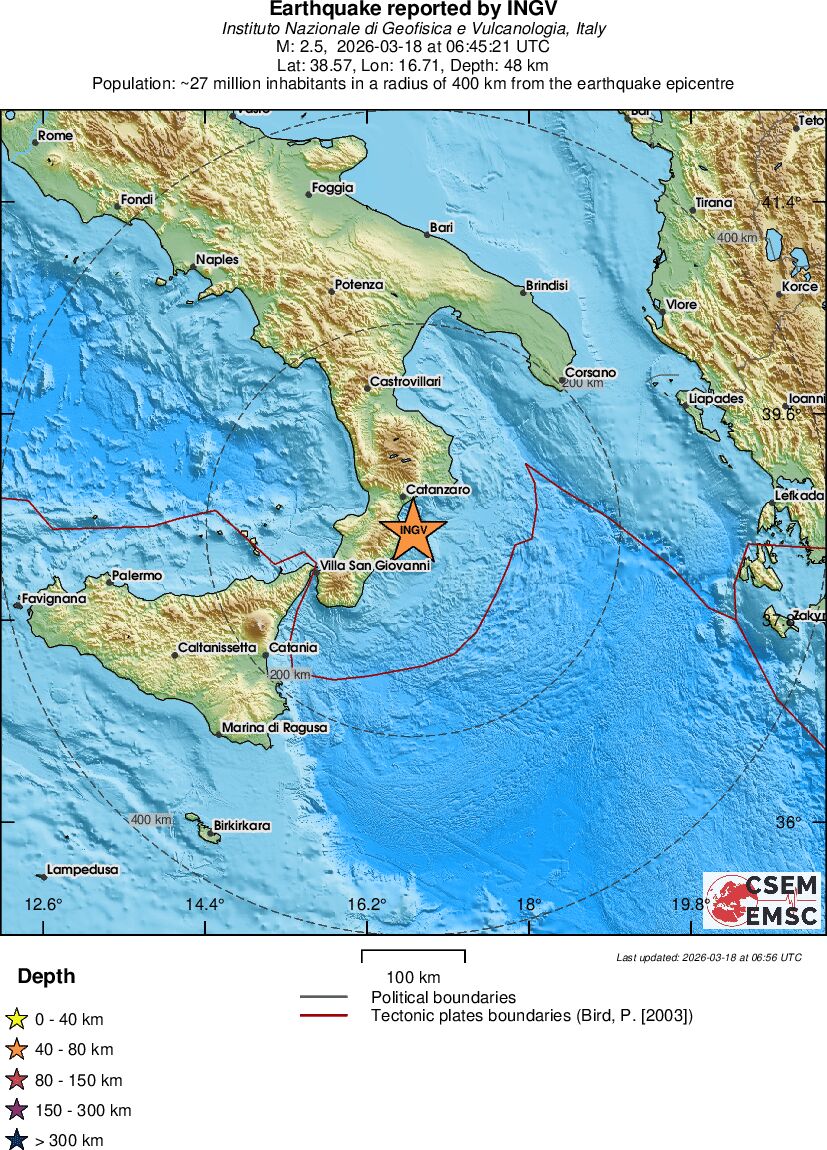 | 2.1 | 13.4 | 811 | 09:25 | Link | Geringer Erdbeben - SOUTHERN ITALY - Heute |