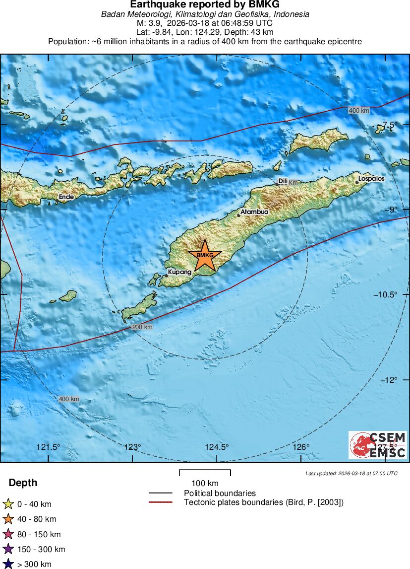 | 3.9 | 43 | 12527 | 07:48 | Link | Geringer Erdbeben - TIMOR REGION - Heute |