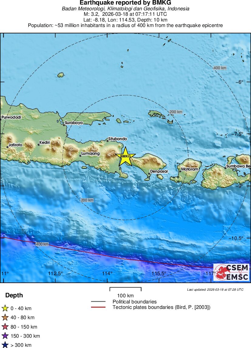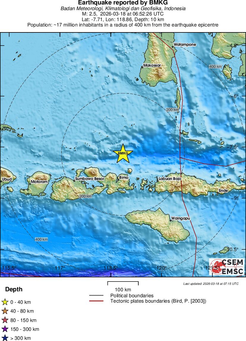 | 3.2 | 10 | 11673 | 08:17 | Link | Geringer Erdbeben - BALI REGION, INDONESIA - Heute |