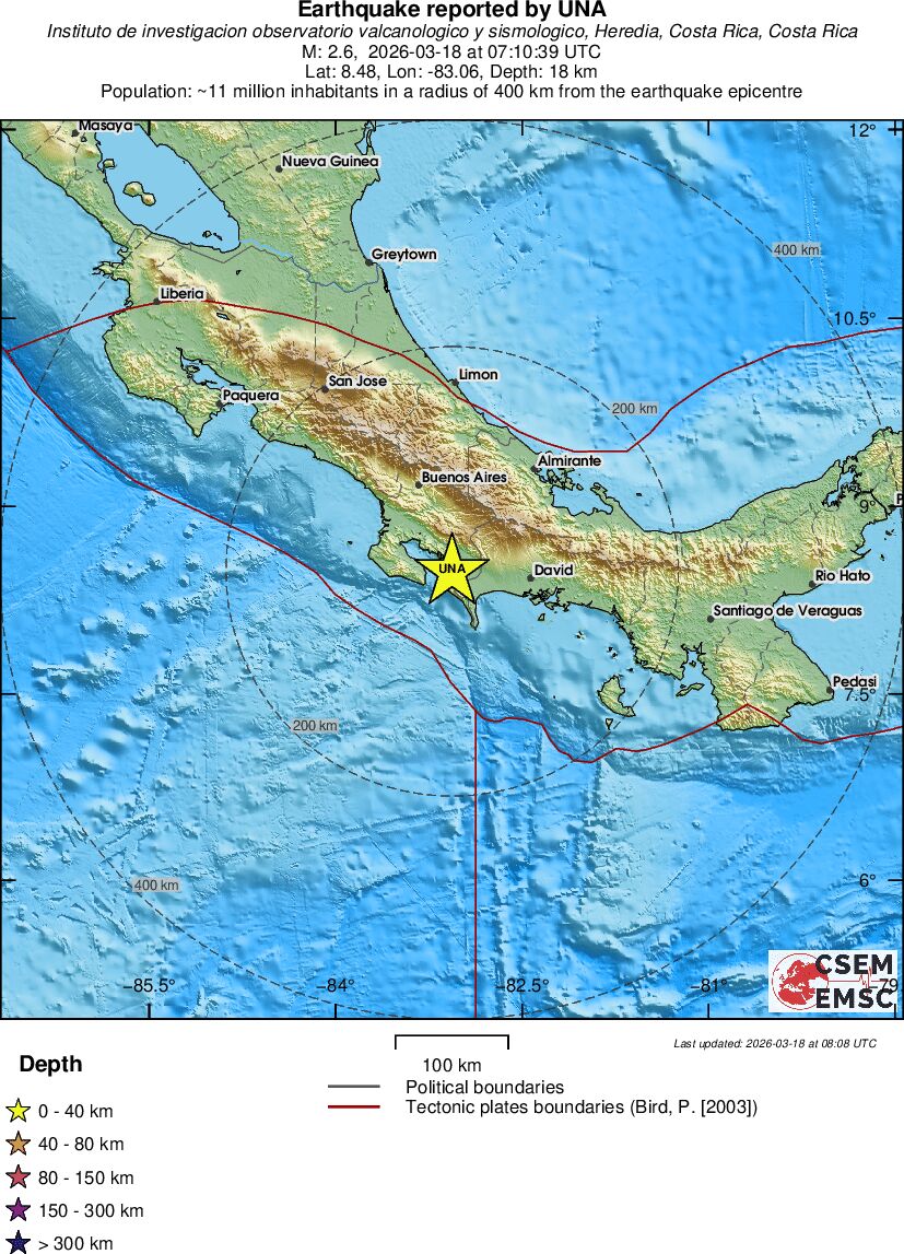 | 2.6 | 18 | 9617 | 08:10 | Link | Geringer Erdbeben - COSTA RICA - Heute |