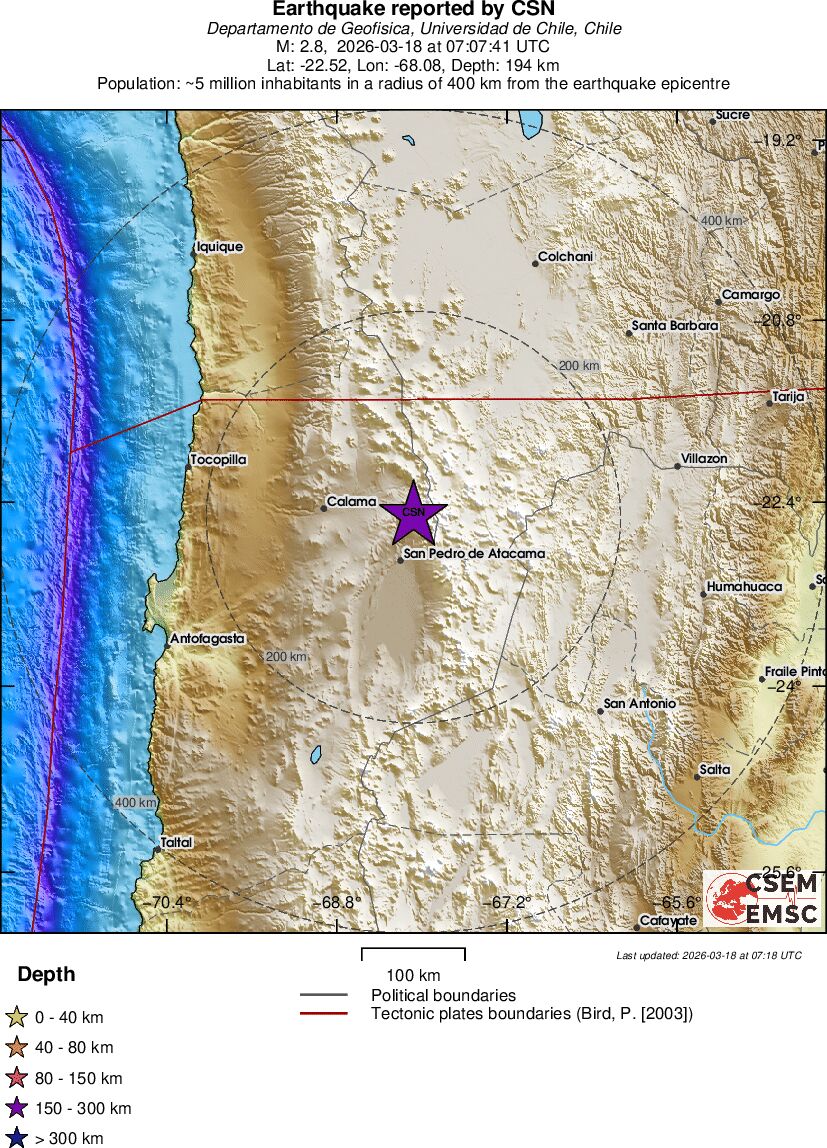 | 2.8 | 194.2 | 11101 | 08:07 | Link | Geringer Erdbeben - ANTOFAGASTA, CHILE - Heute |