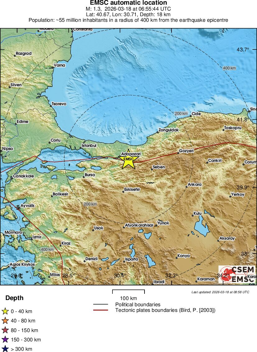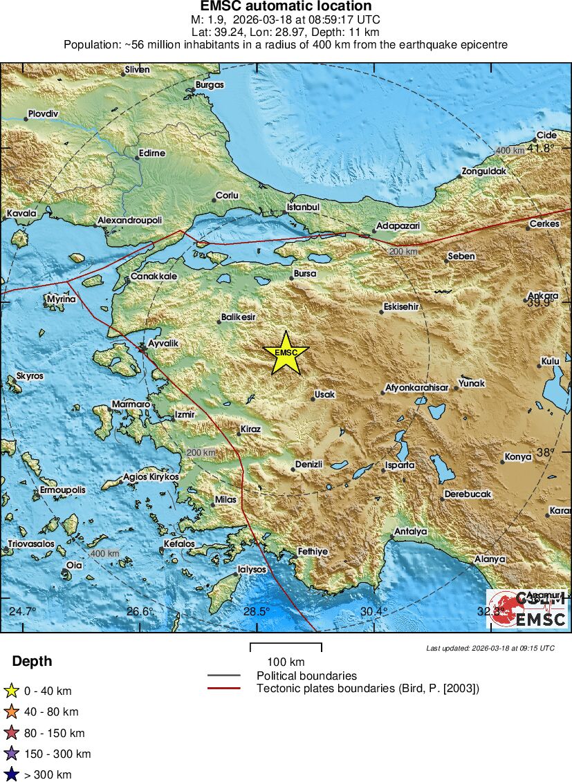 | 1.3 | 17.8 | 1756 | 07:55 | Link | Geringer Erdbeben - WESTERN TURKEY - Heute |