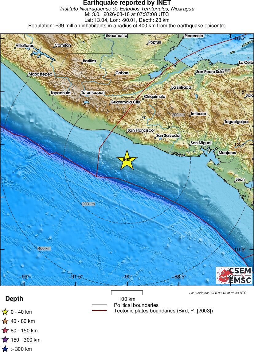 | 3 | 23 | 9738 | 08:37 | Link | Geringer Erdbeben - OFFSHORE EL SALVADOR - Heute |