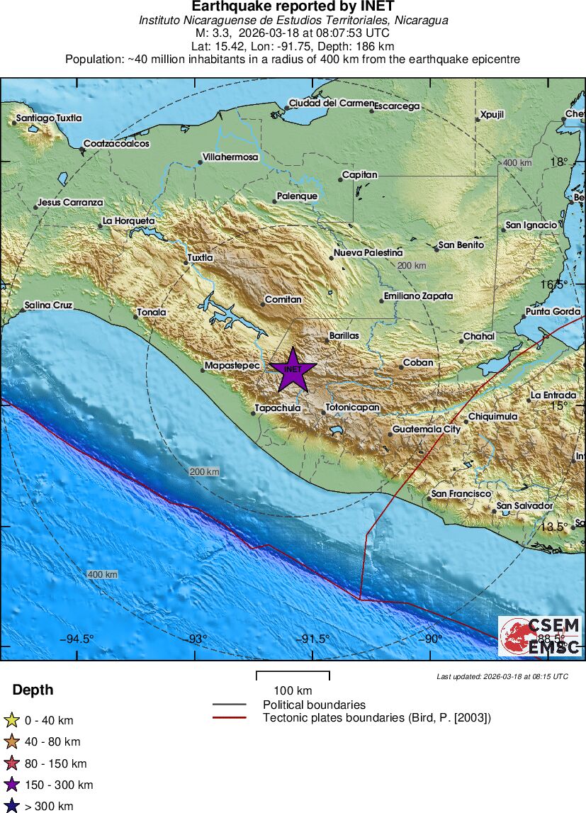 | 3.3 | 186 | 9659 | 09:07 | Link | Geringer Erdbeben - GUATEMALA - Heute |