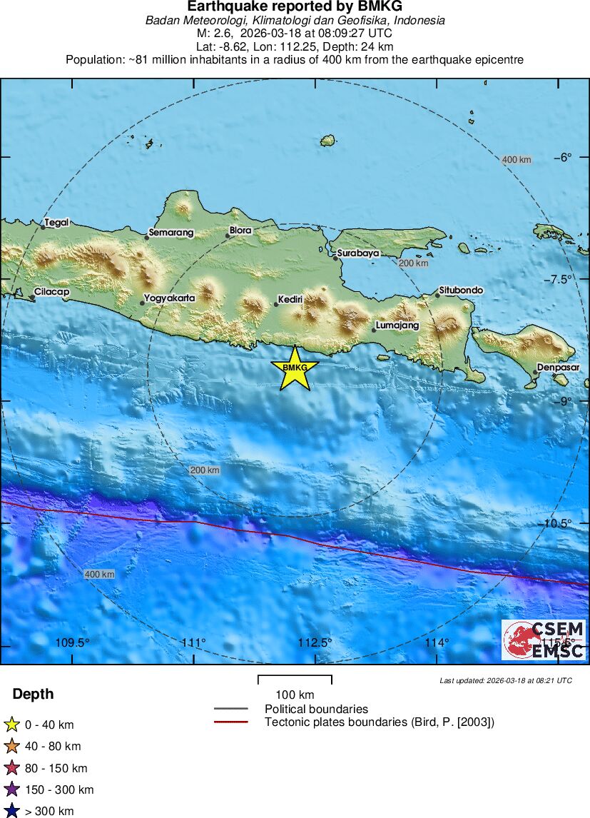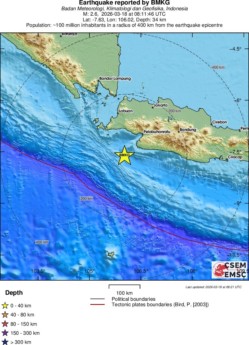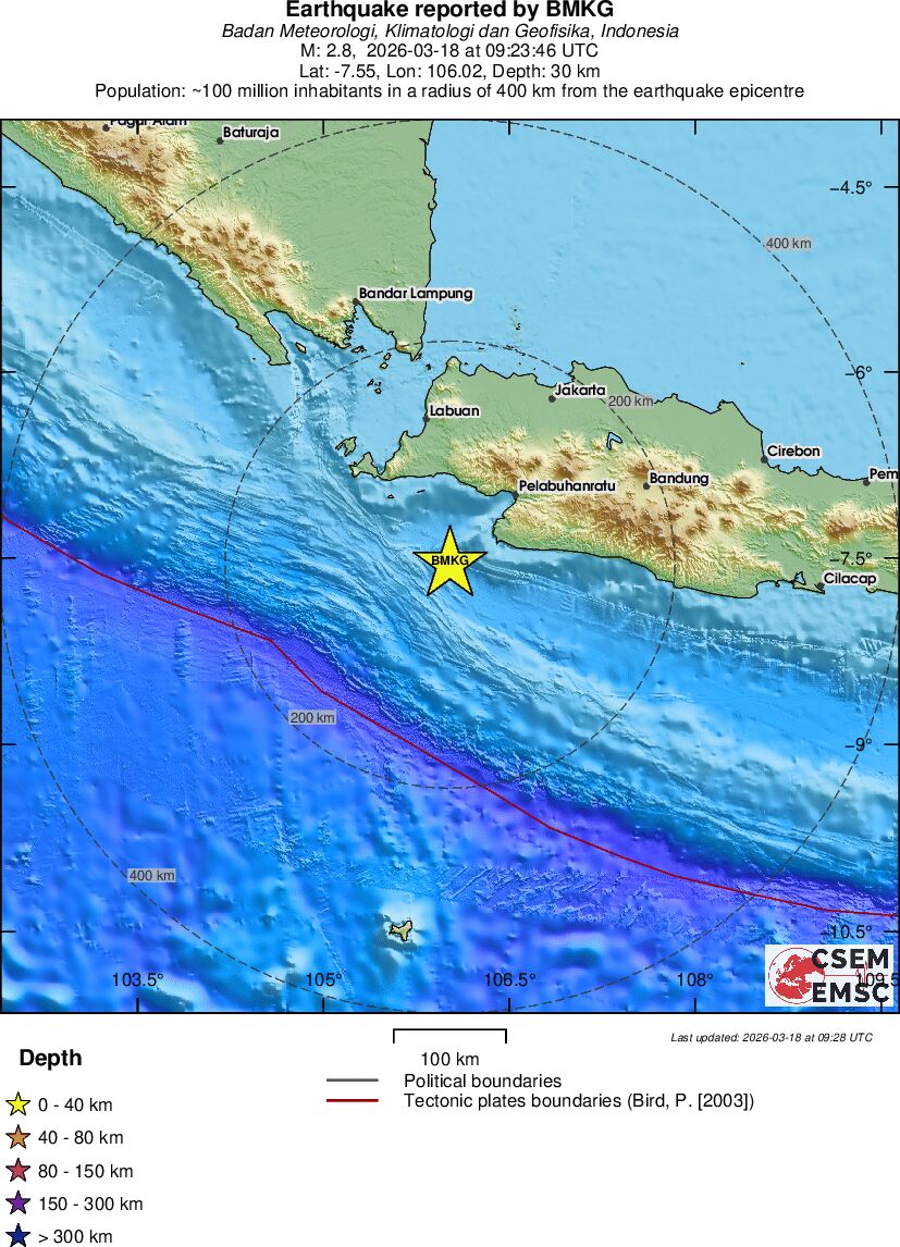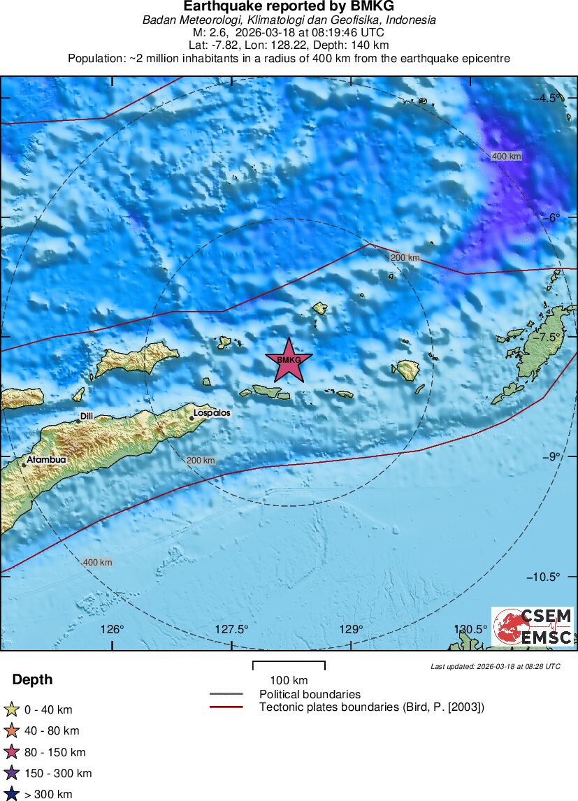 | 2.6 | 140 | 12641 | 09:19 | Link | Geringer Erdbeben - KEPULAUAN BARAT DAYA, INDONESIA - Heute |