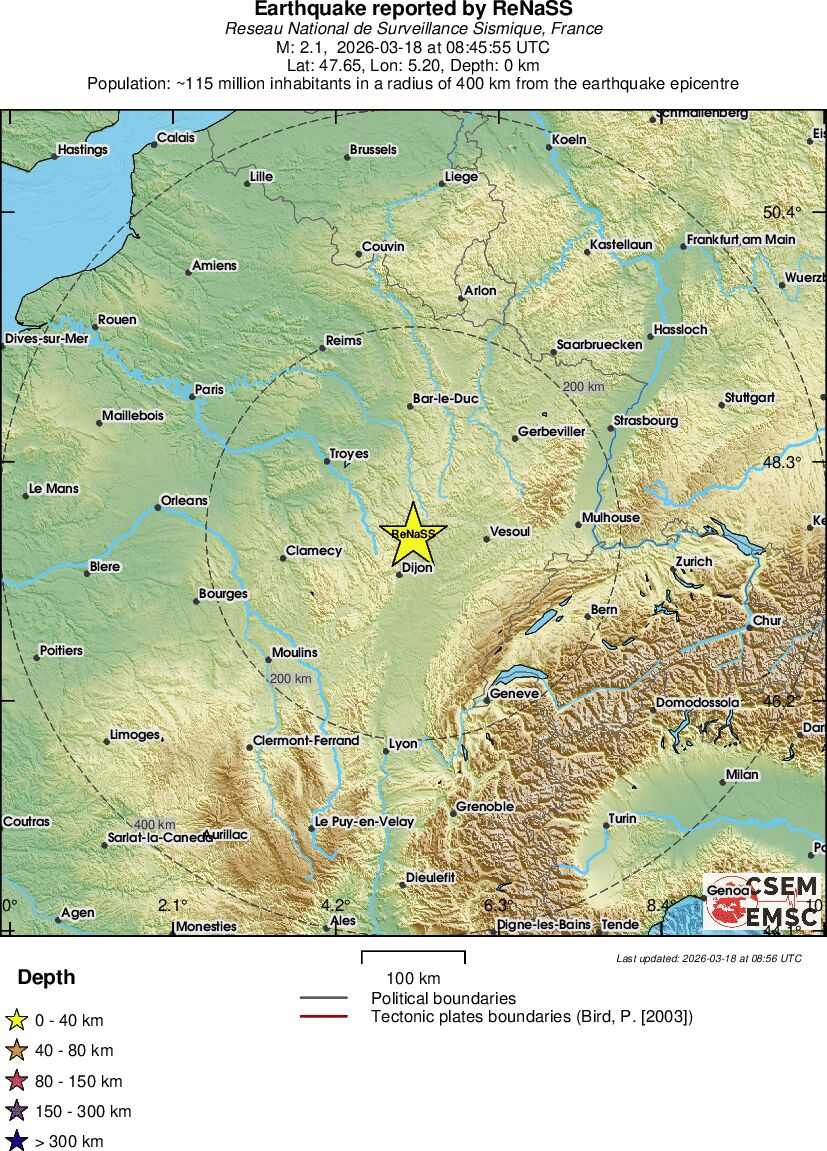 | 2.1 | 0 | 450 | 09:45 | Link | Geringer Erdbeben - FRANCE - Heute |