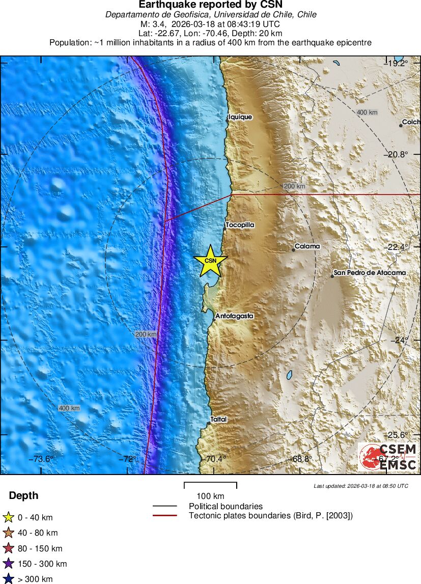 | 3.4 | 20 | 11277 | 09:43 | Link | Geringer Erdbeben - OFFSHORE ANTOFAGASTA, CHILE - Heute |