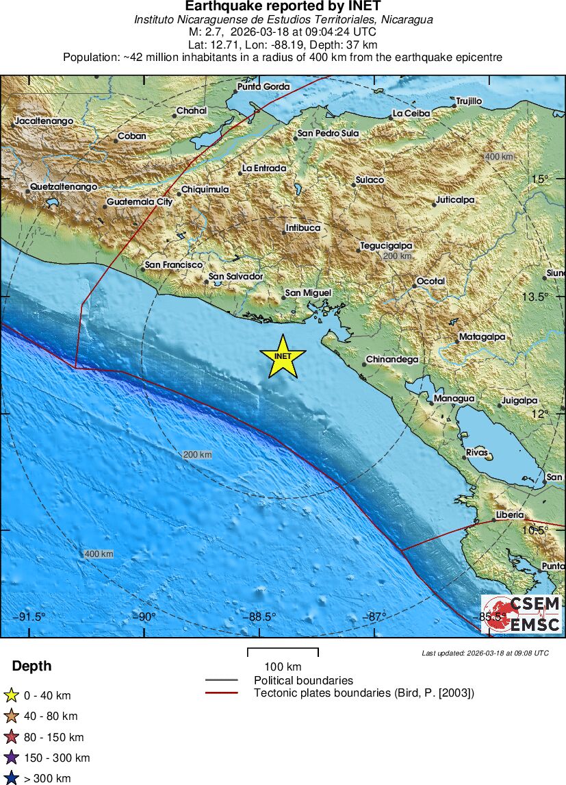 | 2.7 | 37 | 9636 | 10:04 | Link | Geringer Erdbeben - OFFSHORE EL SALVADOR - Heute |